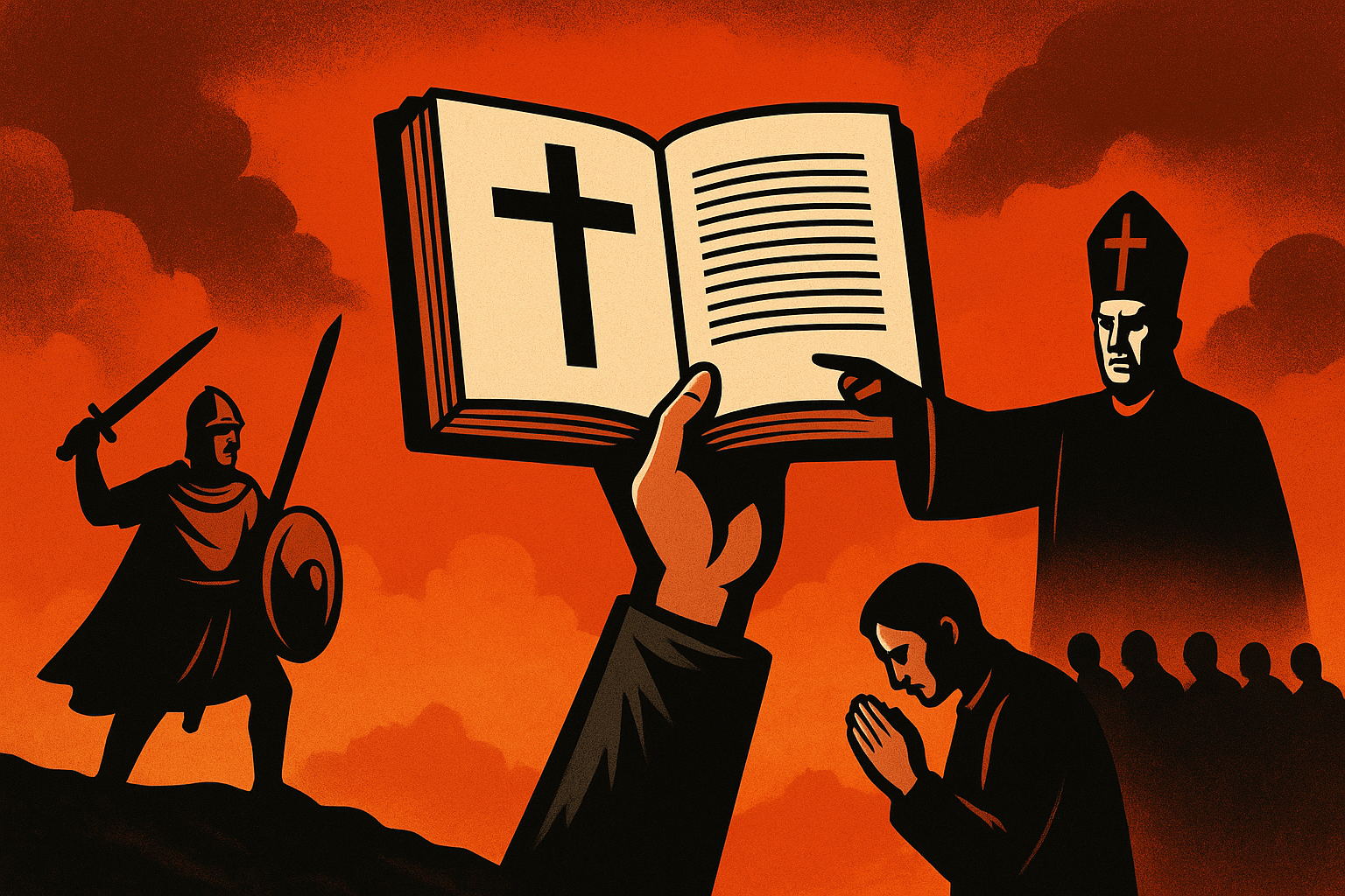 Les puissants brandissent la Bible comme arme sacrée, justifiant guerres, conquêtes et massacres, tout en présentant leur violence comme la volonté divine pour maintenir leur domination.